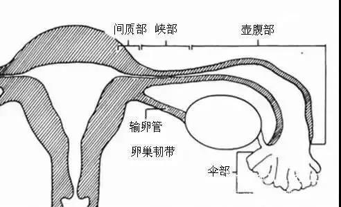 首先从人体的解剖图来看,输卵管为一对细长而弯曲的管道,左右各一,位于子宫两侧,内侧与子宫角相通连,是链接子宫与卵巢的桥梁,外端游离,而与卵巢接近,全长约8~15cm。输卵管管壁由粘膜、环状平滑肌和浆膜构成,分伞部、壶腹部、峡部和间质部。